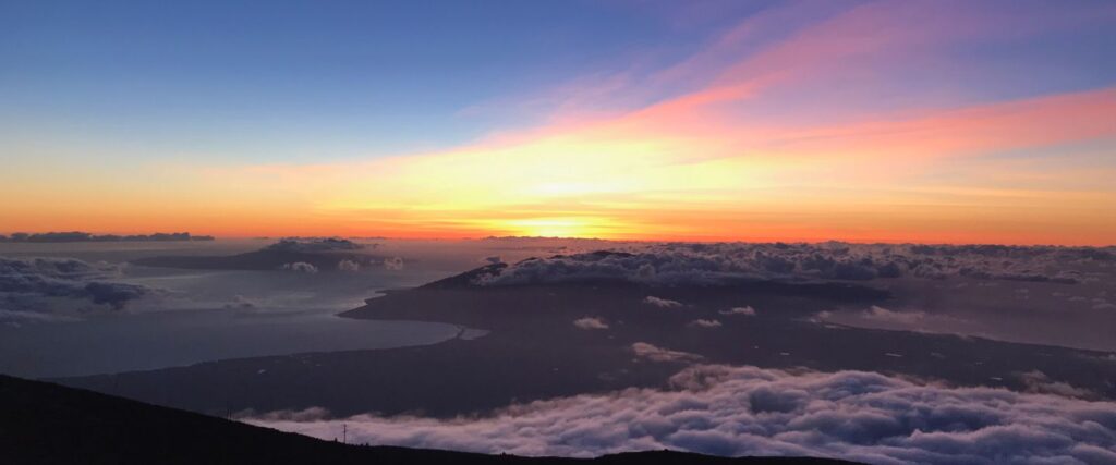 After the farm, we head for a delicious dinner at a local favorite, Kula Bistro. Or, if you wish, we can head straight to the summit and enjoy our locally sourced, organic pupu platter (substantial enough to replace dinner). Just settle down on our camping chairs and wrap yourselves in blankets to witness the most amazing sunset you’ll see on Maui!